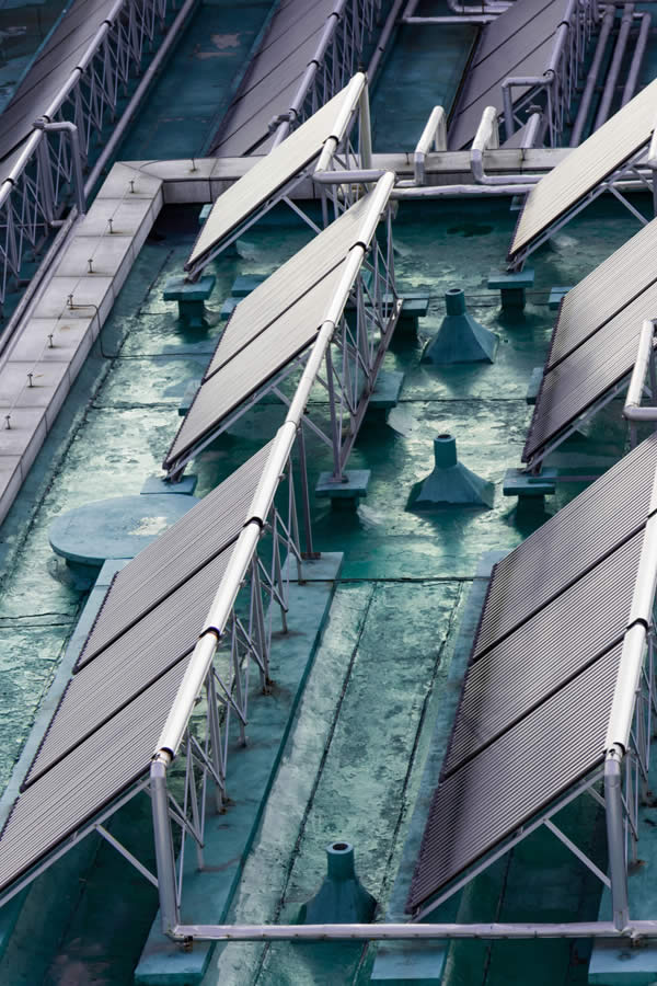 Instalación y mantenimiento de sistemas solares térmicos para calentar agua sanitaria y apoyar la calefacción en hogares, comunidades e instalaciones industriales.